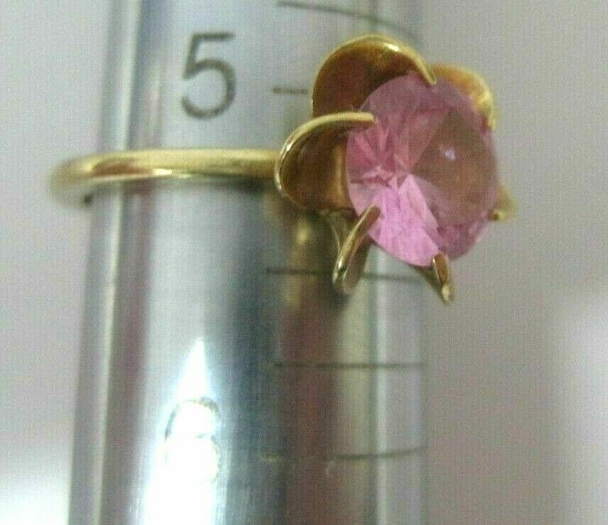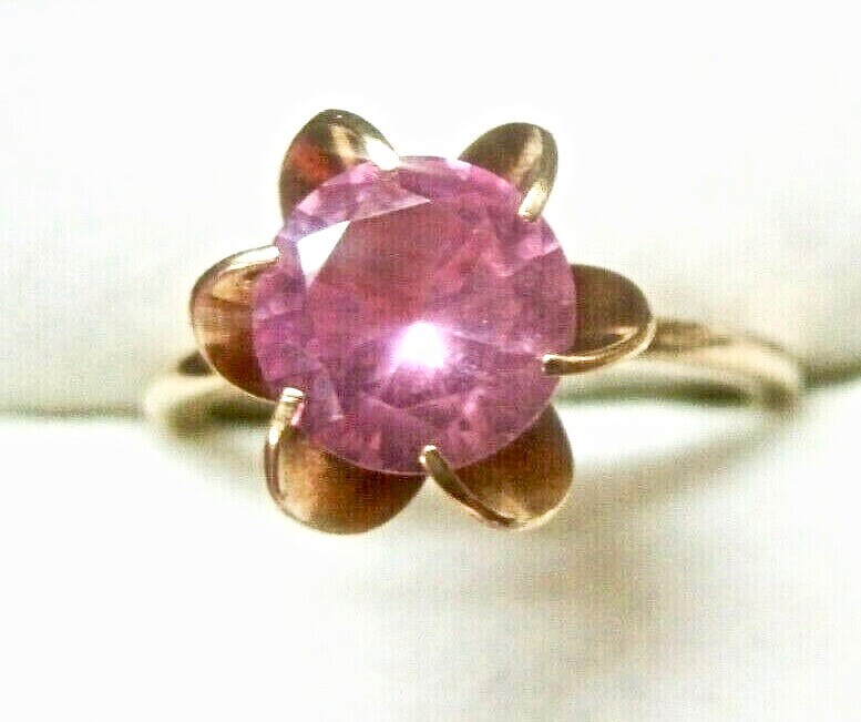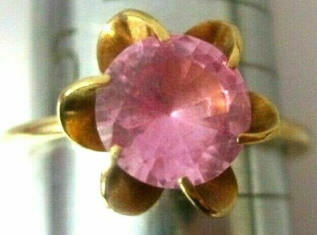 Beautiful Vintage Retro 10K Yellow Gold Pink Tourmaline Gemstone Flower Ring