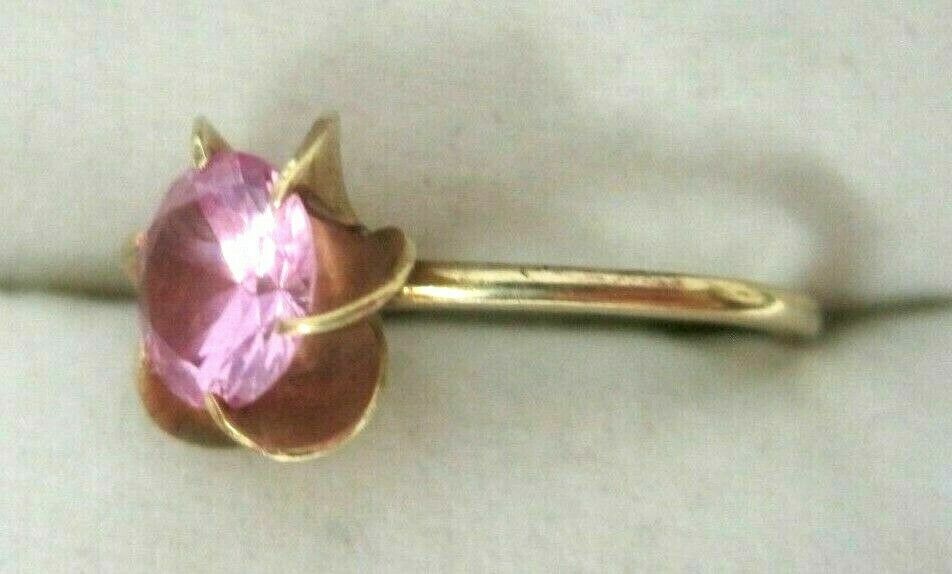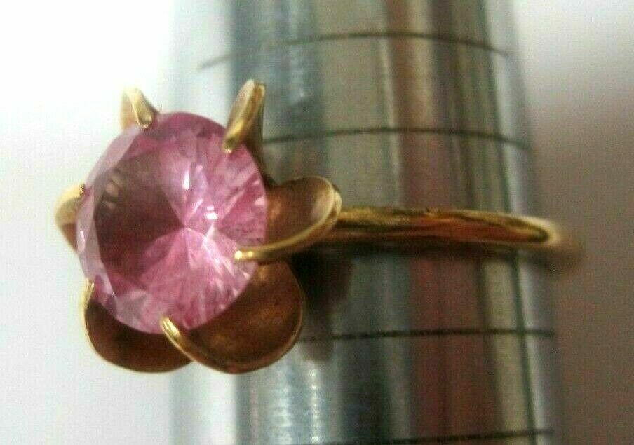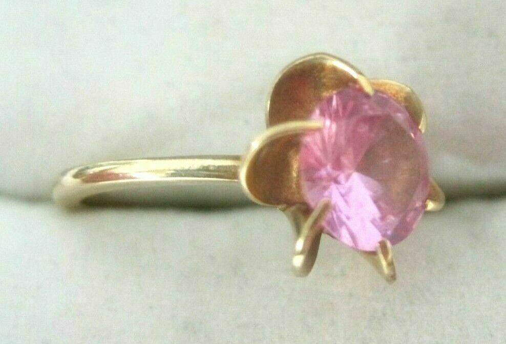 Vintage Retro Estate 10K Gold Pink Tourmaline Flower Ring 2.0 Grams ESEMCO