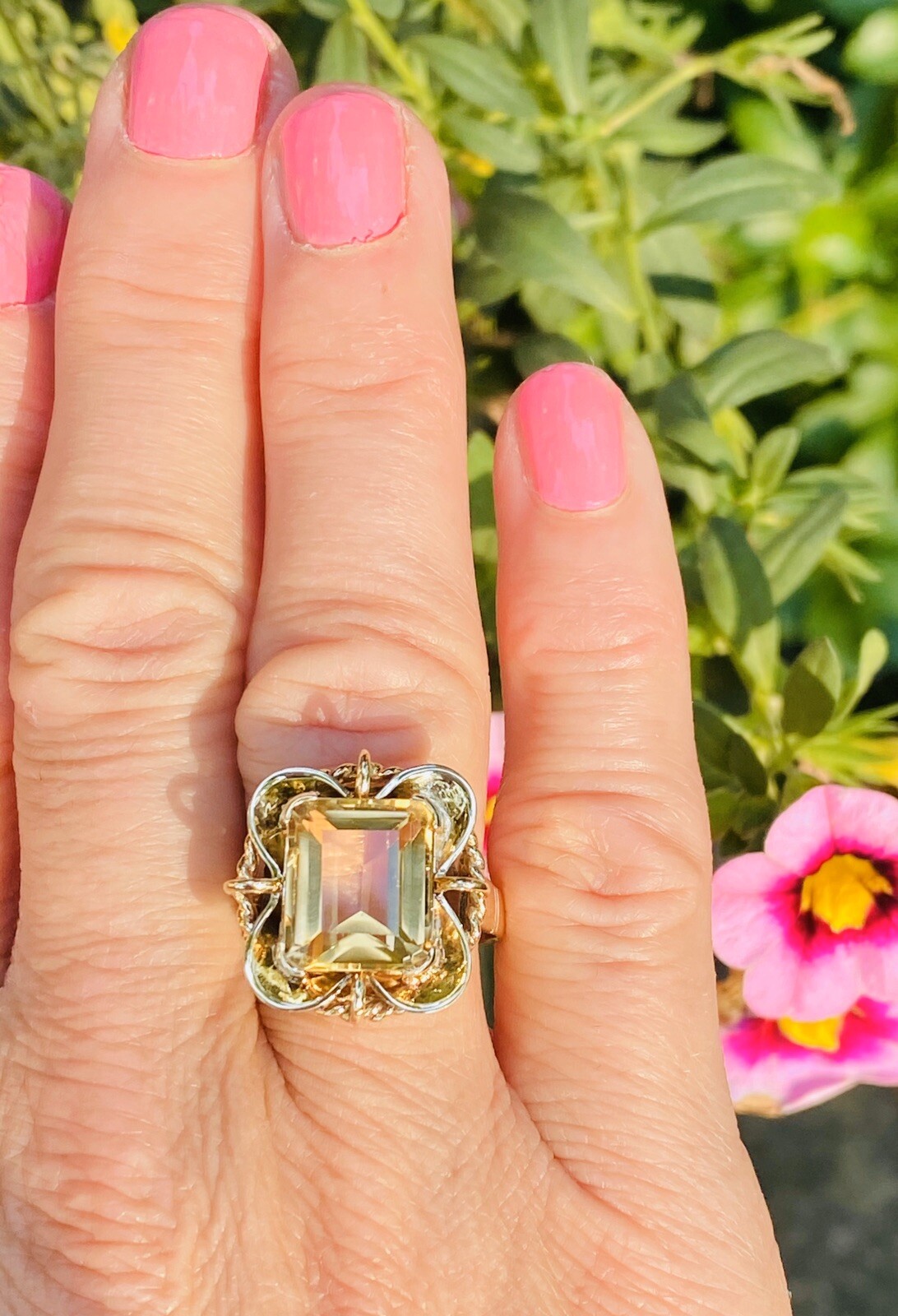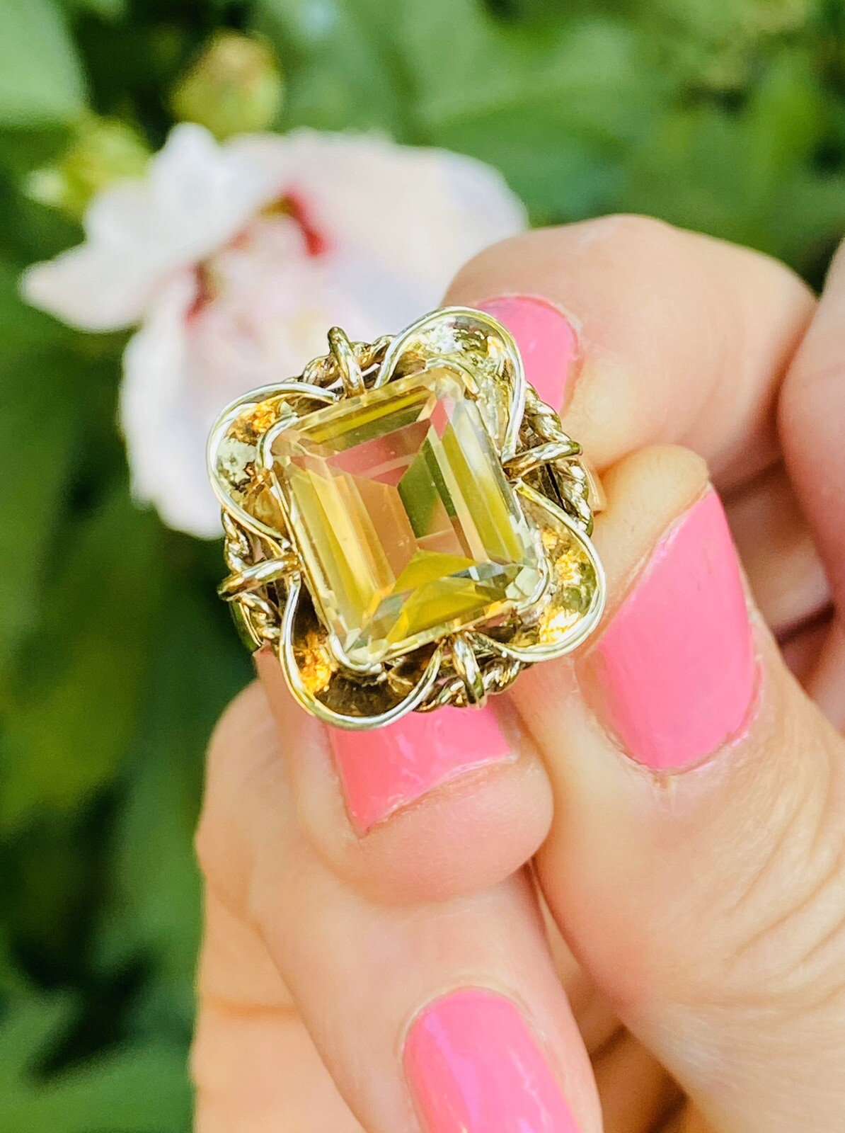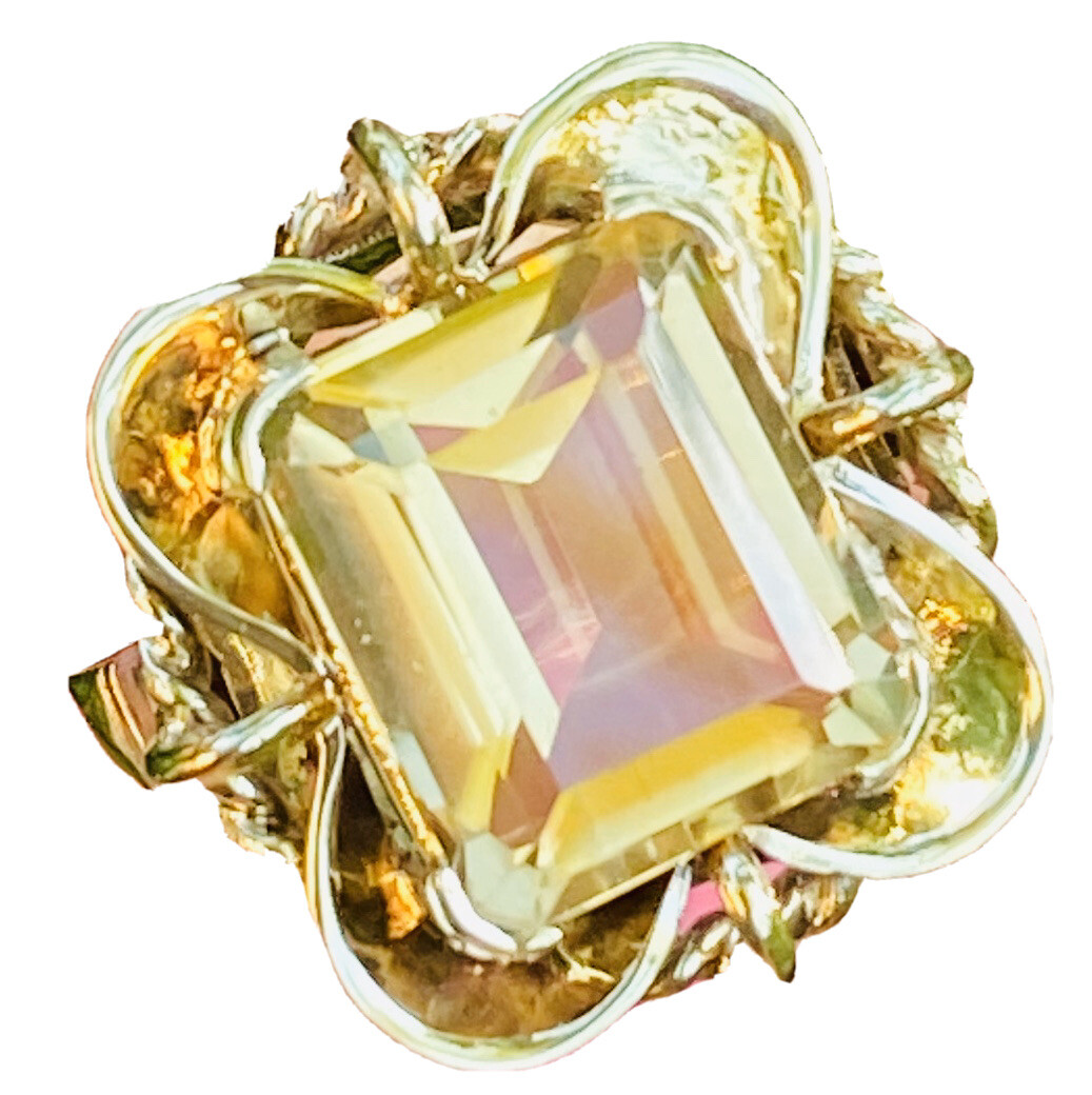 Vintage Retro Estate 14k Gold Large 5.57 Emerald Cut Citrine Midcentury Ring