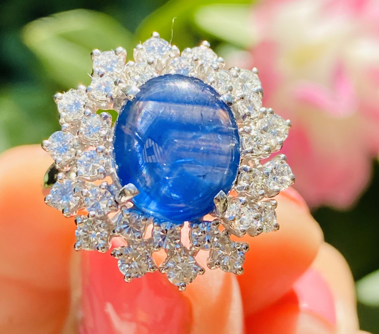 Vintage Estate 14k White Gold 7.75ctw Blue Sapphire Diamond Halo Engagement Ring