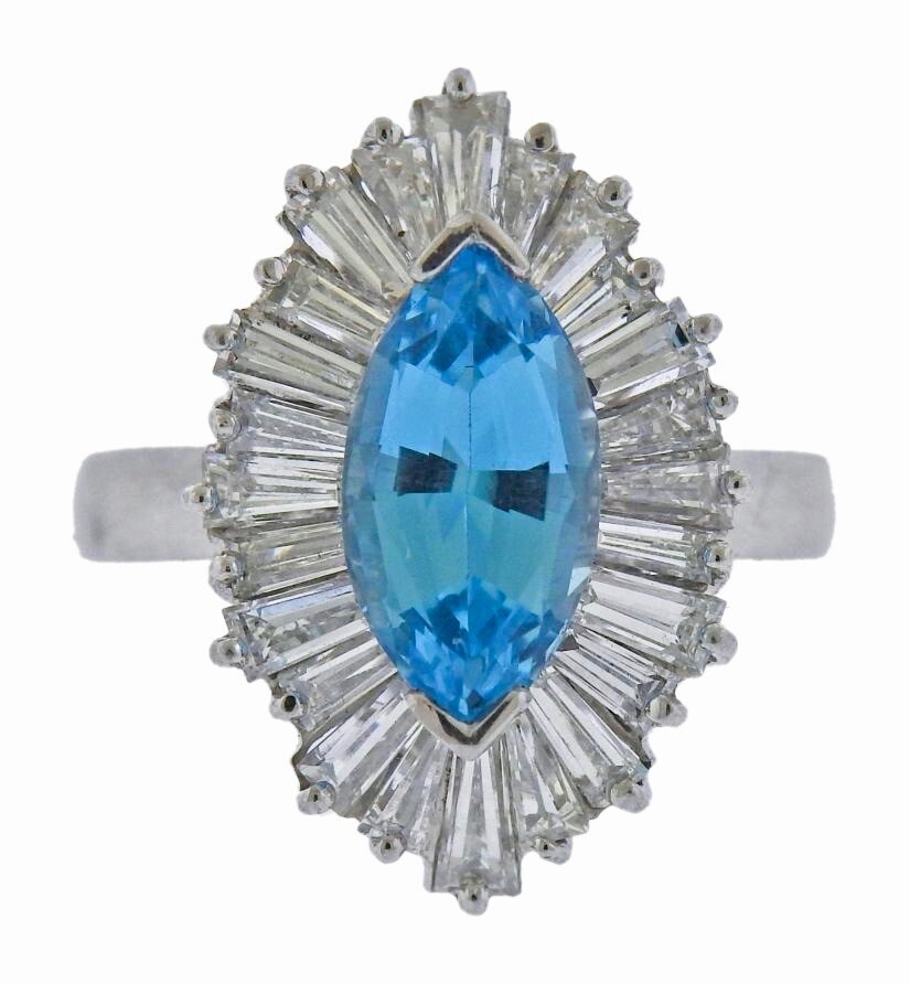 Vintage Ring-Dant Ringdant Marquise Aquamarine Diamond Ballerina Ring Pendant