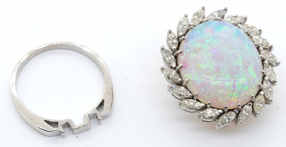 Vintage Ring-dant 18k Opal Cabachon 15ct Marquise Diamond Ballerina Ring