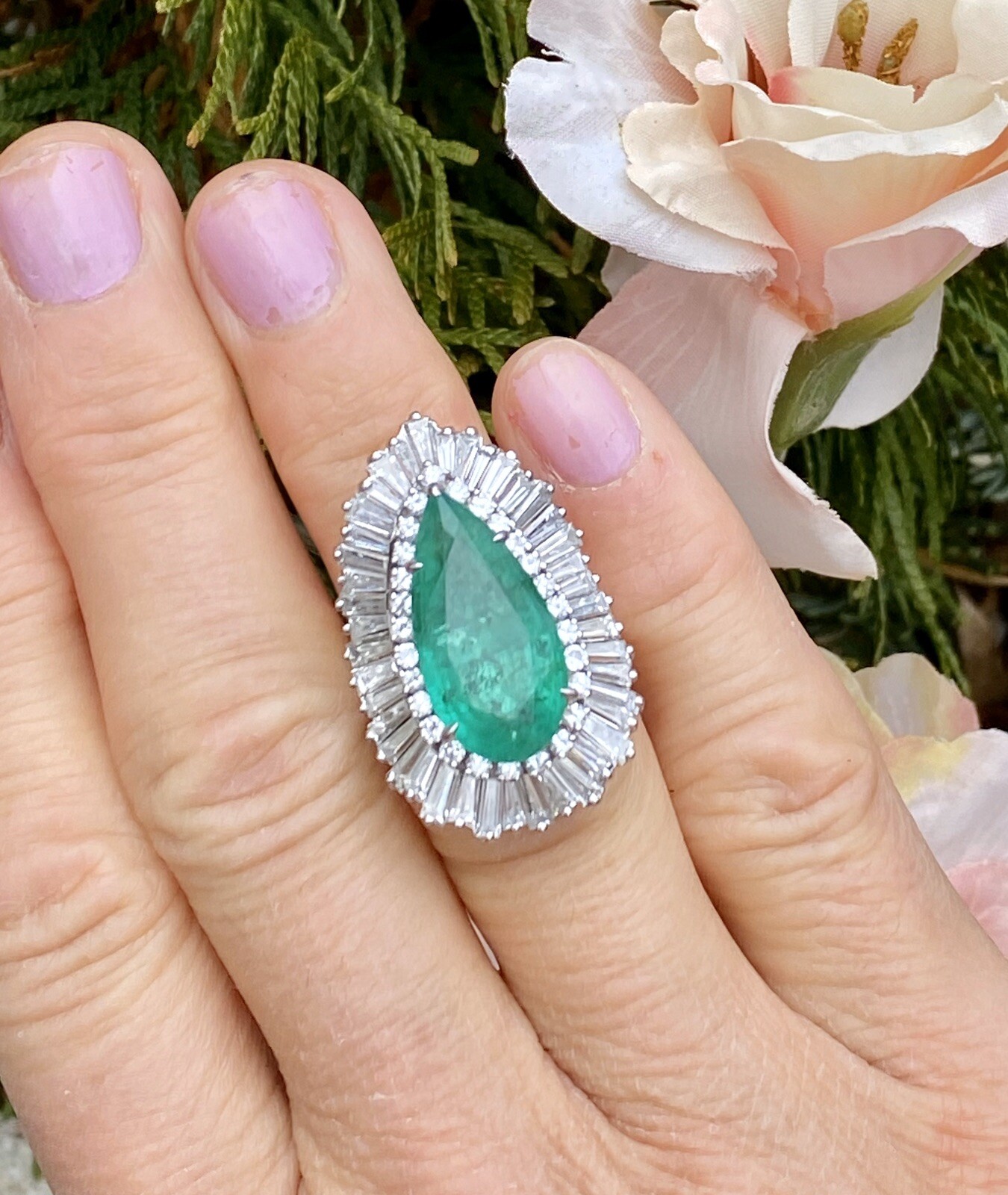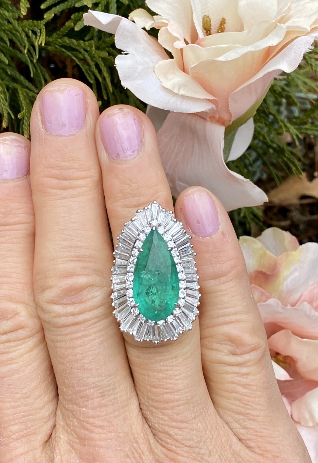 Vintage Ring-dant HUGE Platinum 14k Gold 18ct Emerald VS Diamond Baguette Ballerina Ring