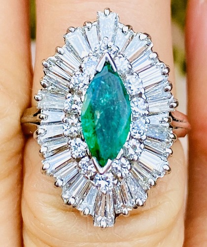 HUGE Vintage 14k Gold VS Emerald Marquise Diamond Baguette Ballerina Ring