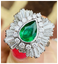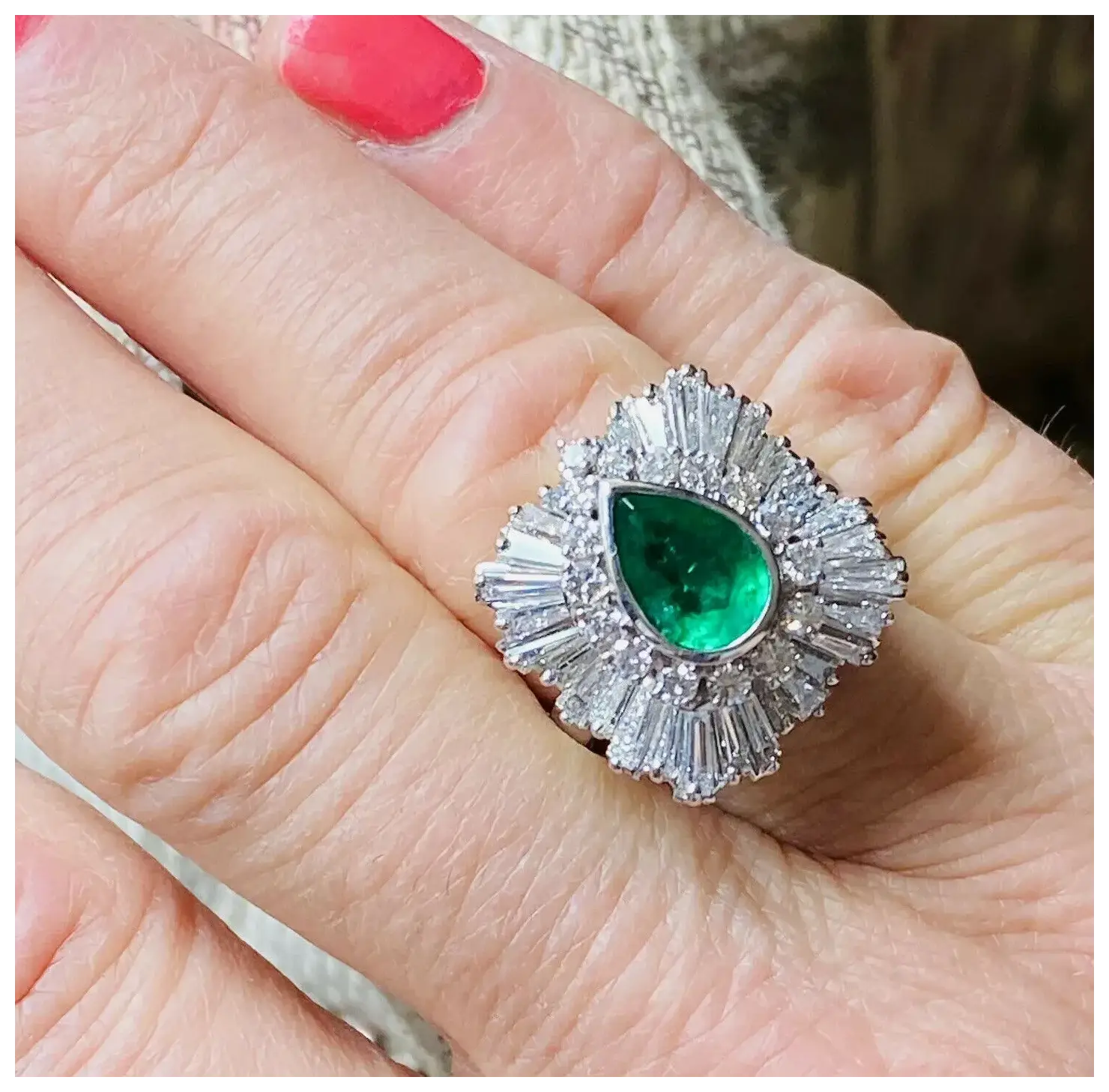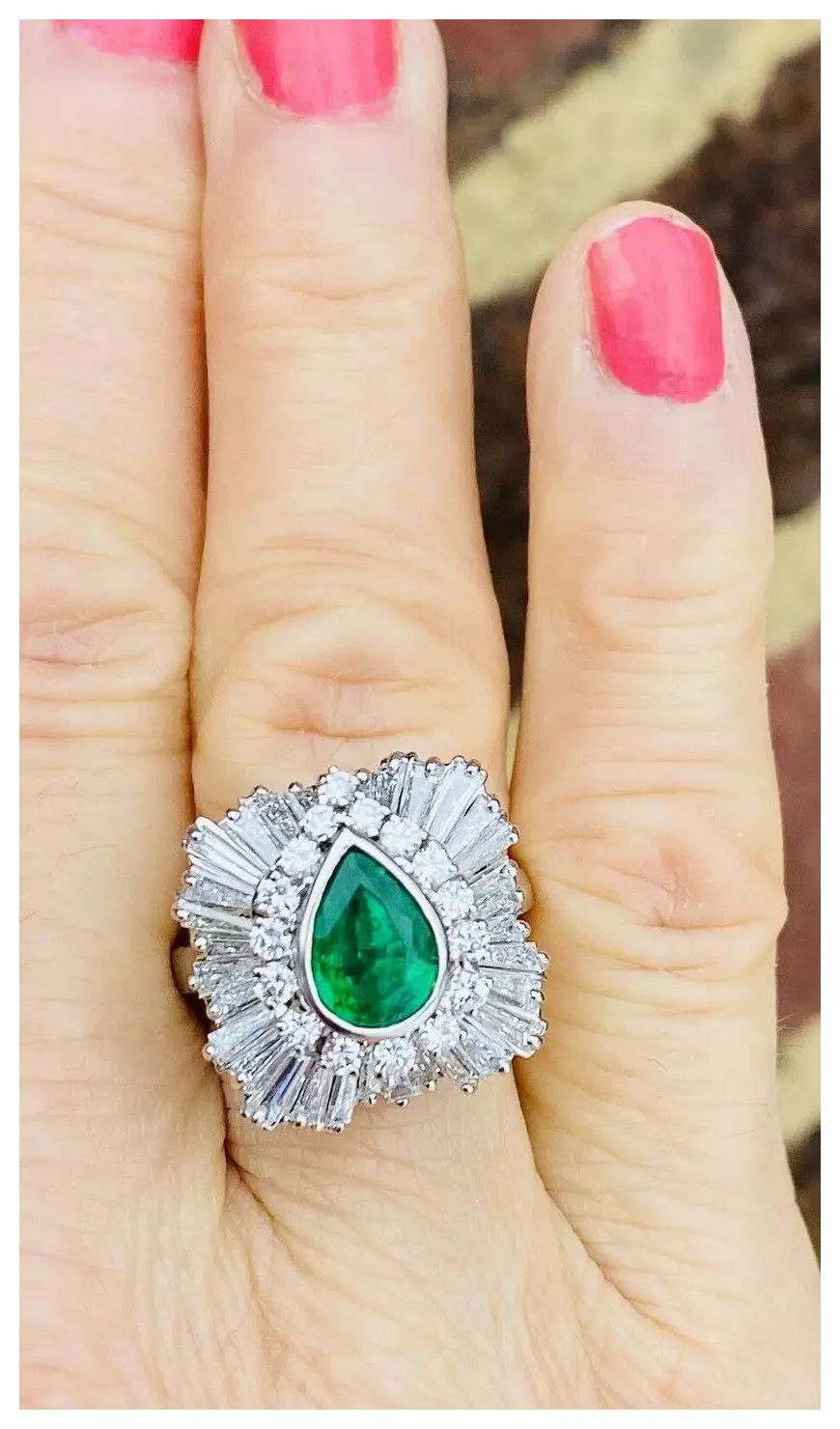 Vintage Ring-dant Platinum 4ct Emerald G VS Diamond Ballerina Ring