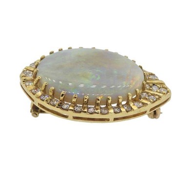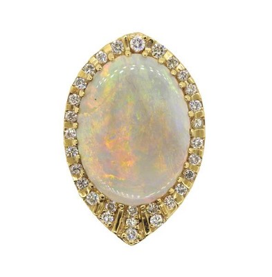 Impressive Large 30ct VS Diamond Opal 14k Gold Brooch Pendant Pin